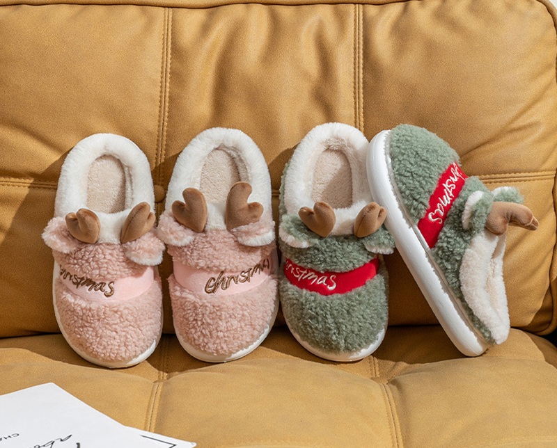 Stay warm and festive all winter with these Christmas elk slip-on house slippers, designed for soft comfort and a cute holiday look. The suede-style upper features a playful antler theme and candy-color options that make them perfect for cozy mornings, movie nights, and seasonal lounging.